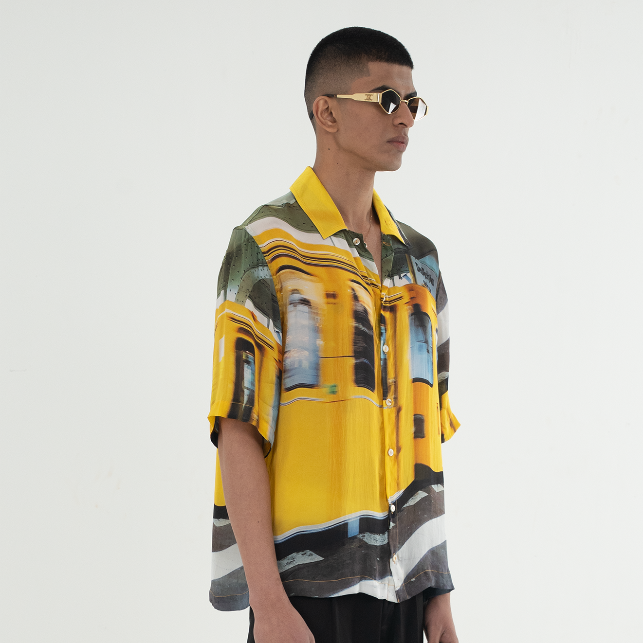 This premium shirt with vibrant print showcasing the transition that you fear not while being in the presence of now. It mirrors architecture, presence, and that confident pause you’re after.